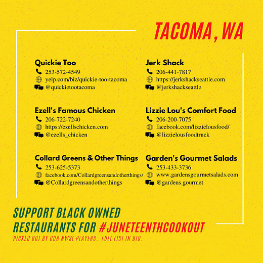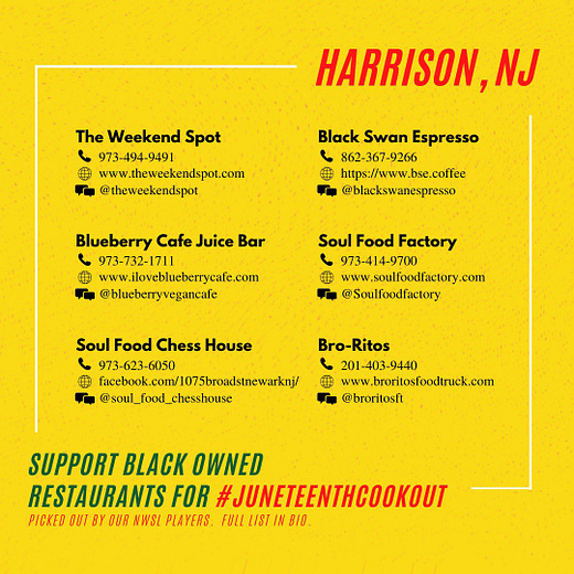 Here they have compiled lists of Black own restaurants to support in NWSL markets.