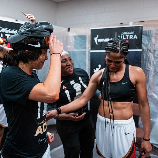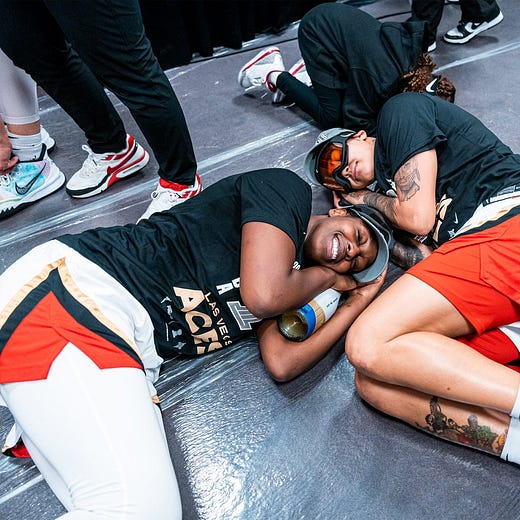 I waited a minute to read this newsletter for when I had time to savor it. I'm from Illinois, so it was painful to see the Sky lose in the semis. But, I'm also a U of SC grad, so I couldn't be happier for Gamecock great A'ja Wilson. I think my favorite clip here was of the RAiders fans cheering watching the end of the game on the big board. Slowly, but surely, women's sports are chipping away at getting the attention and respect they deserve. Thank you for this newsletter!!